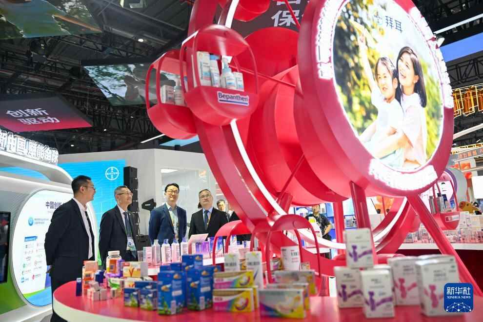 11月7日,观众在医疗器械及医药保健展区拜耳展台参观。拜耳是进博会八届“全勤生”。