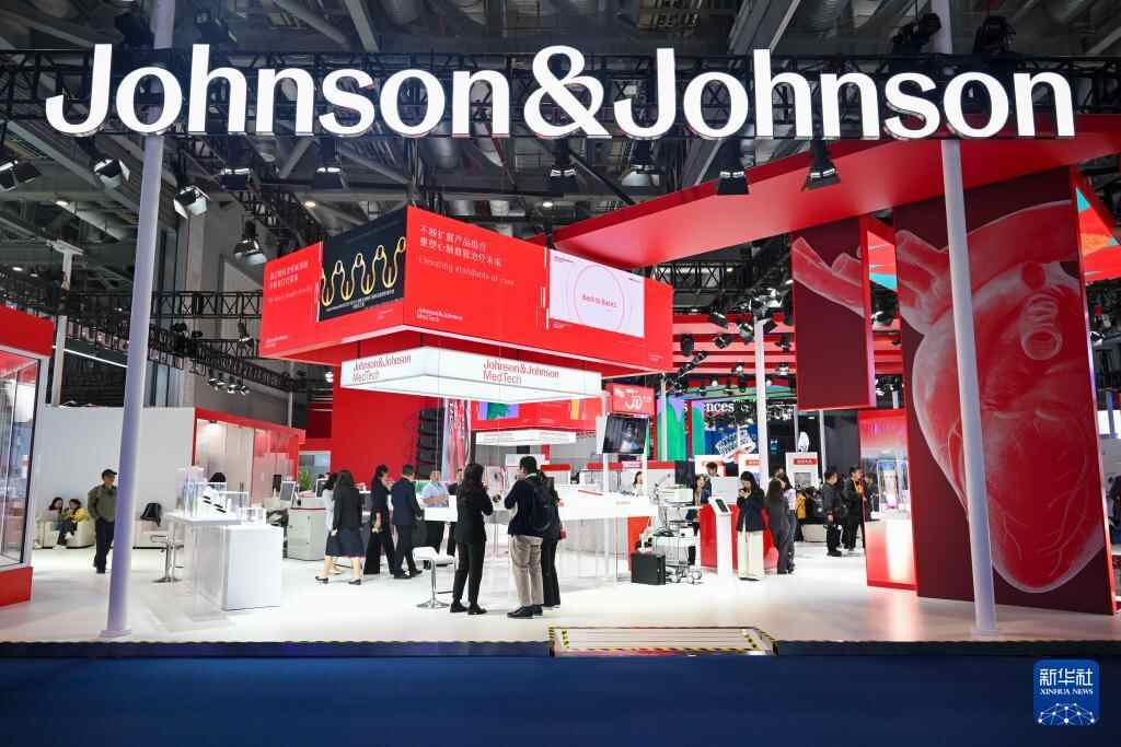 11月7日,观众在医疗器械及医药保健展区强生展台参观。强生是进博会八届“全勤生”。