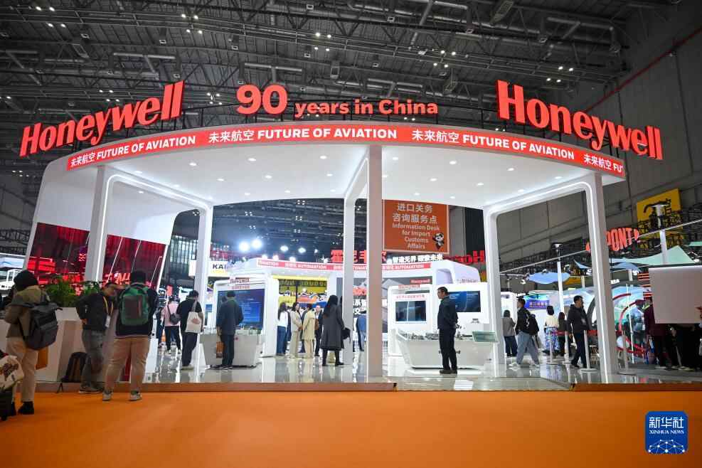 11月7日,观众在技术装备展区霍尼韦尔展台参观。霍尼韦尔是进博会八届“全勤生”。