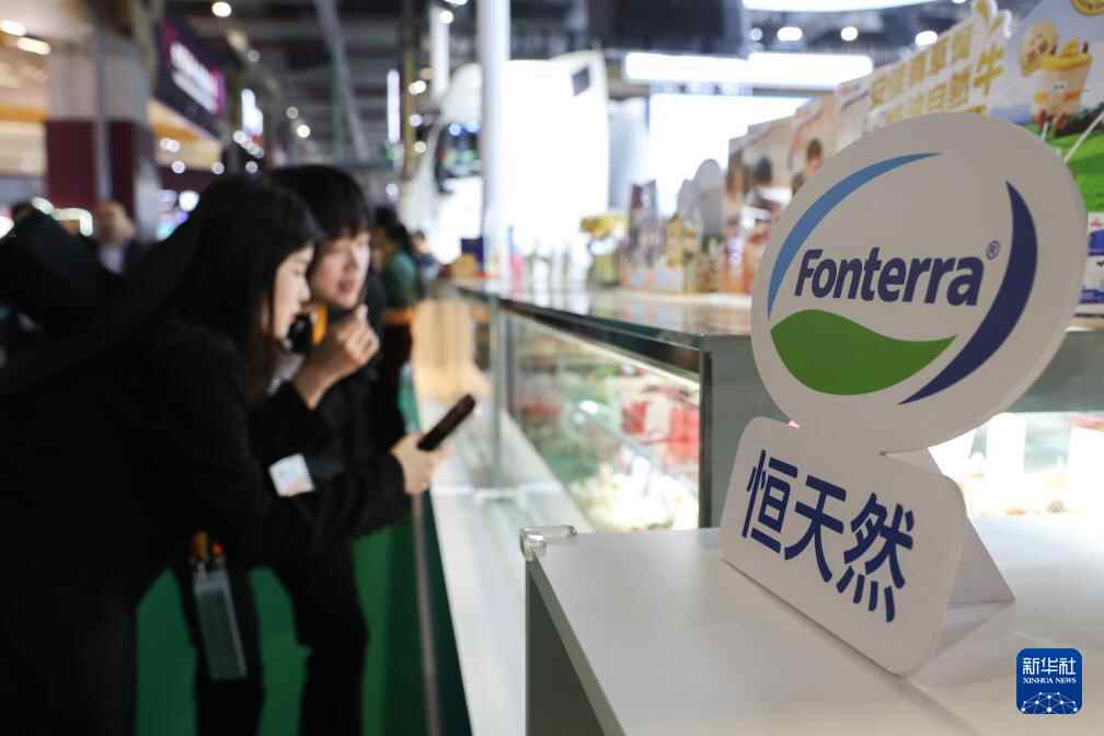 11月7日,人们在农食产品展区恒天然展台参观。恒天然是进博会八届“全勤生”。
