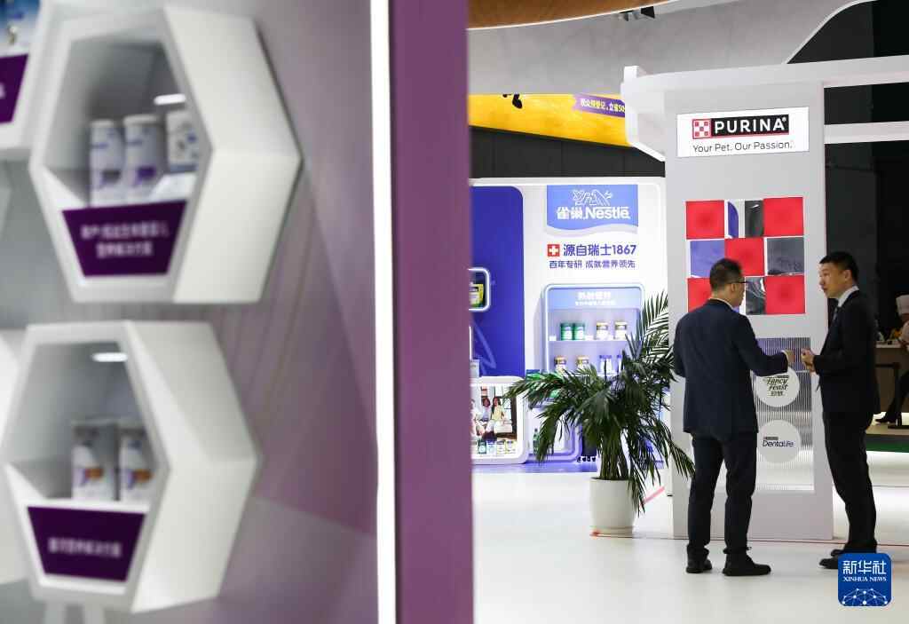 这是11月7日拍摄的位于农食产品展区的雀巢集团展台。雀巢是进博会八届“全勤生”。