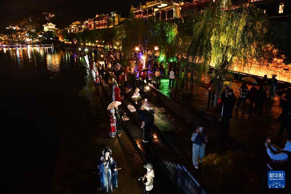 凤凰古城位于湖南省湘西土家族苗族自治州凤凰县,沱江穿城而过,城内古建筑、特色民居众多。近年来,当地持续规范旅游市场,发展旅拍等旅游服务。游客们身着带有当地民族特色的服饰漫步沱江两岸,欣赏古城美景,感受民俗风情。