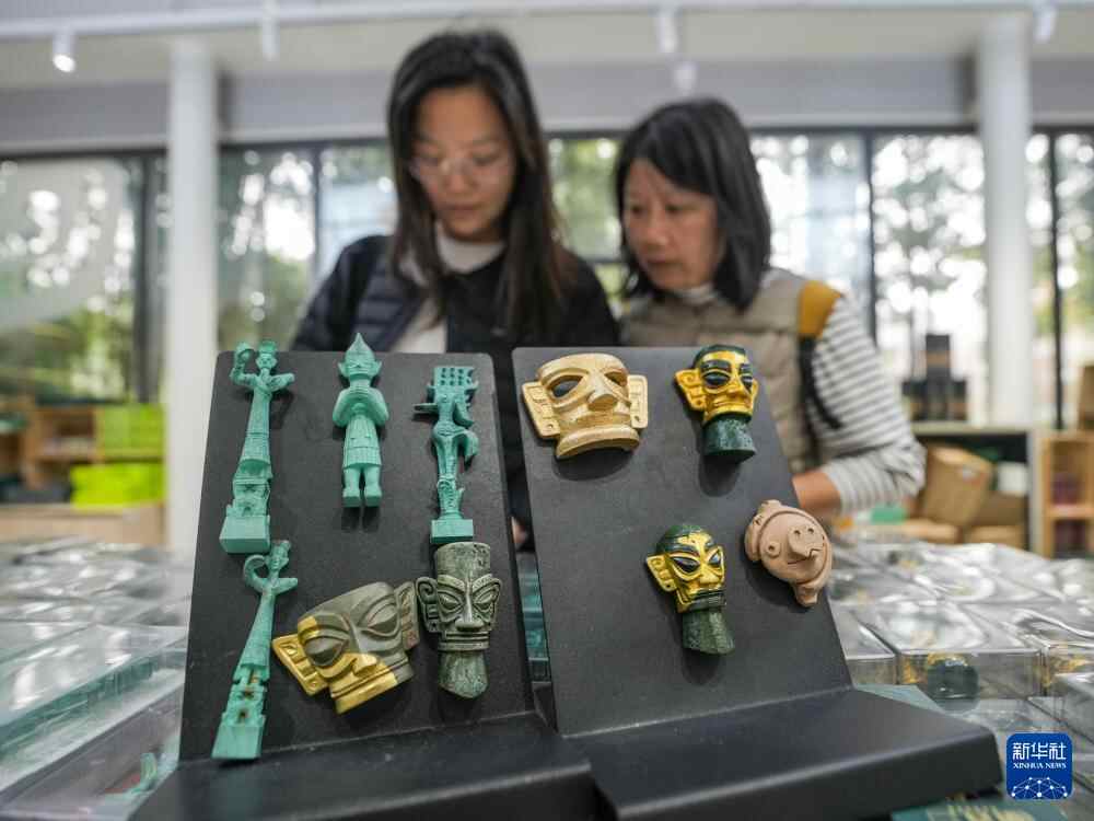 近年来,三星堆遗址重要考古发现成果陆续公布并展出,带动三星堆博物馆的文创产品设计销售热潮。一些文创产品取材于发掘出土的金面罩、青铜器等文物,受到人们的欢迎。