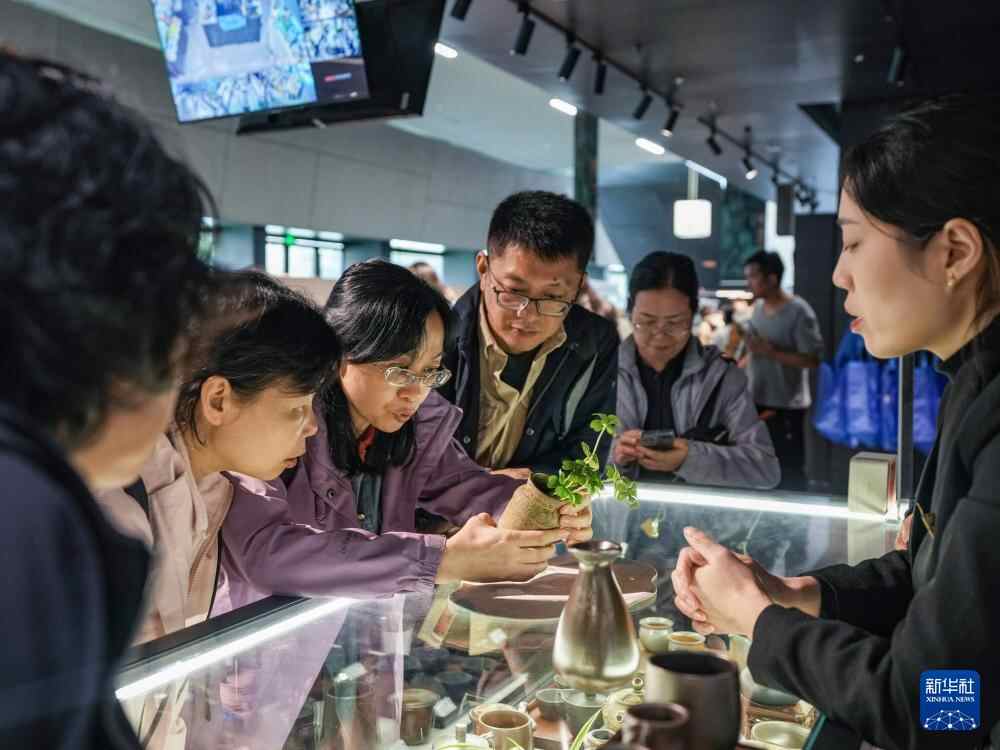 游客在四川省广汉市三星堆博物馆内的文创商店选购文创产品(10月30日摄)。