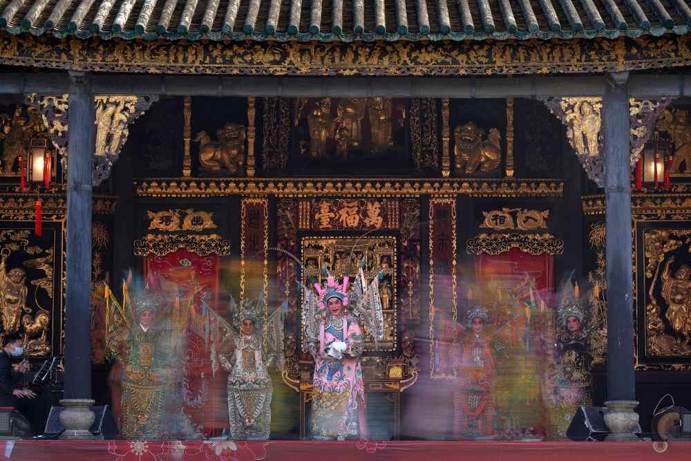 演员在粤剧之乡佛山古老戏台上演出(2023年1月19日摄)。