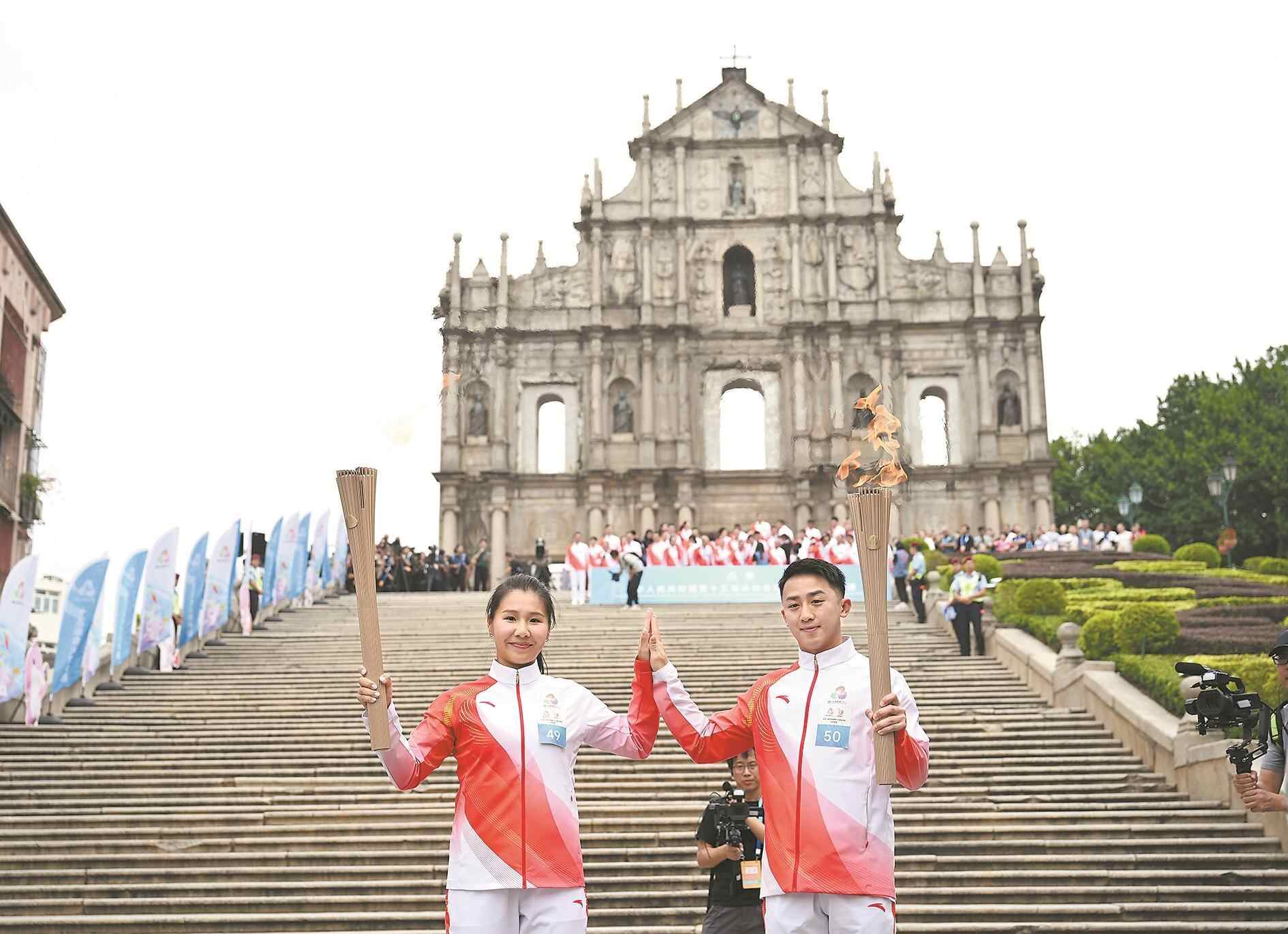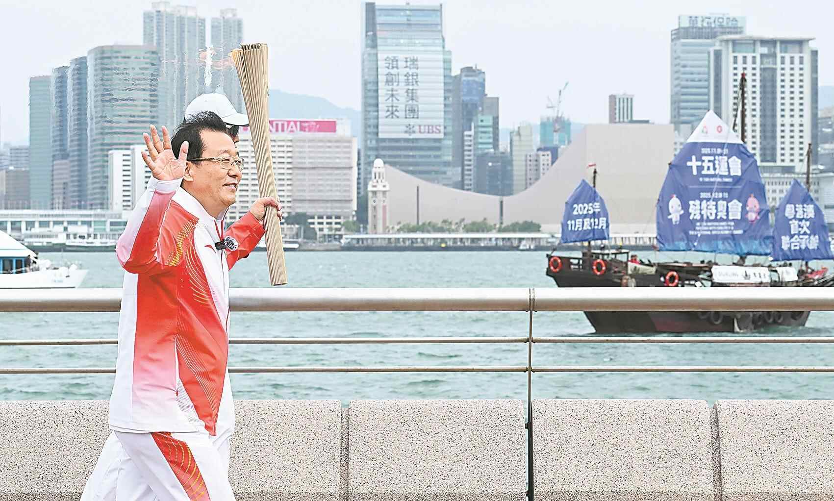 第十五届全国运动会火炬传递2日在香港、澳门、广州、深圳四个城市同步举行,这是全运会历史上首次跨境火炬传递,也是全运会火炬首次在香港和澳门传递。