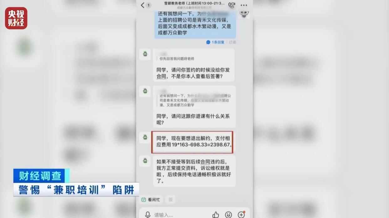通过交流,记者了解到,这类发布各种兼职岗位的公司,其实都是靠培训课挣钱。兼职人员如果坚持学习,公司挣的就是培训费,兼职人员要是识破了培训的手段,要求解约,公司挣的就是提前约定好的违约金,如此一来,这些搞所谓兼职转培训的公司就能“只赚不赔”。
