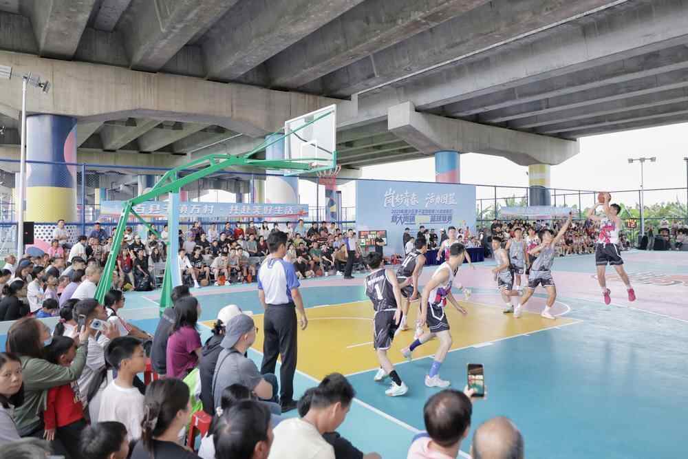 另一典型案例是“缤纷里”运动空间。该地块原为黄榄快线桥下闲置区域,经改造建成21个专业场地,涵盖篮球、足球、羽毛球、网球等多种功能,占地面积超8000平方米。场地周边配套休息区、饮水站、卫生间及亲子活动区,服务全年龄段群众。本次“村BA”总决赛选址于此,进一步提升了新场地的使用率和知名度。