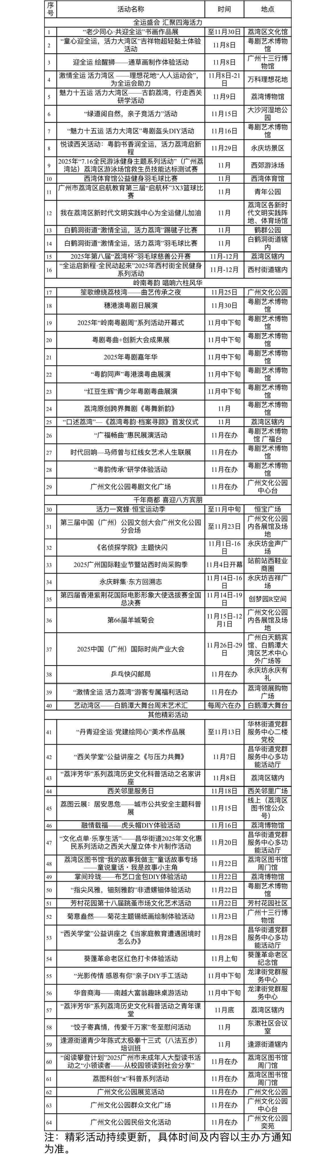 “激情全运 活力荔湾”荔湾区11月活动一览表