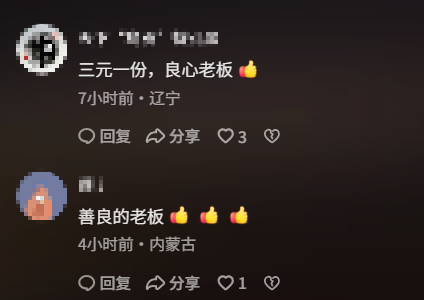 据大河网,河南一县城炒面3元一份还带鸡蛋,几名中学生经常下晚自习后来吃,老板还免费送豆浆和烤肠。老板说:“一群孩子,听他们叫一声姨都暖心。”