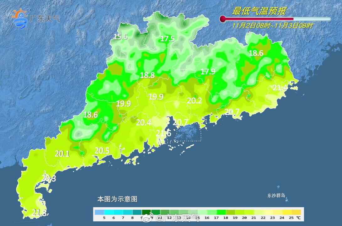 ◆预计,11月2-3日,受弱冷空气持续补充扩散影响,广东全省大部多云间阴天,部分市县有分散小雨,各地气温逐日略有下降,过程日平均气温将下降3~6℃,早晚体感清凉;4日受高空槽影响,西部市县阴天有中雨局部大雨,其余大部市县阴天有小雨。
