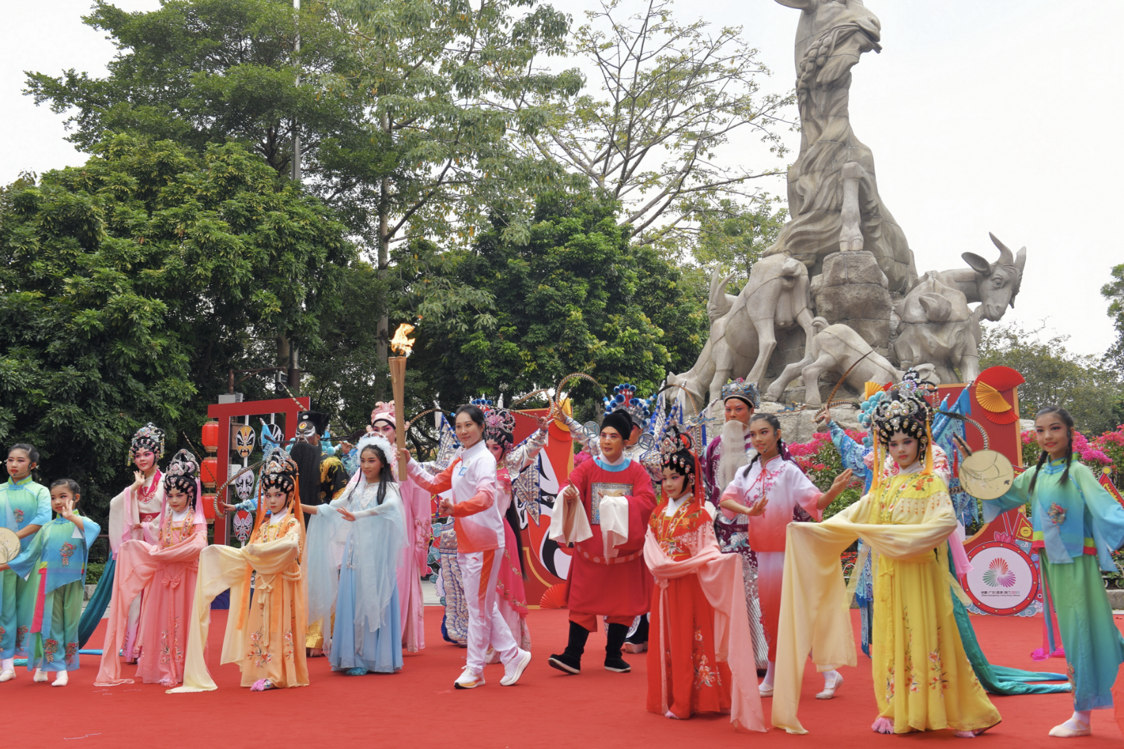 11月2日,第十五届全国运动会(以下简称“十五运会”)火炬传递正式举行。当青年粤剧表演艺术家李嘉宜作为第八棒火炬手,手持火炬到达广州越秀公园五羊石雕时,与一场正在进行的“南国红豆”粤剧展演热情相遇。