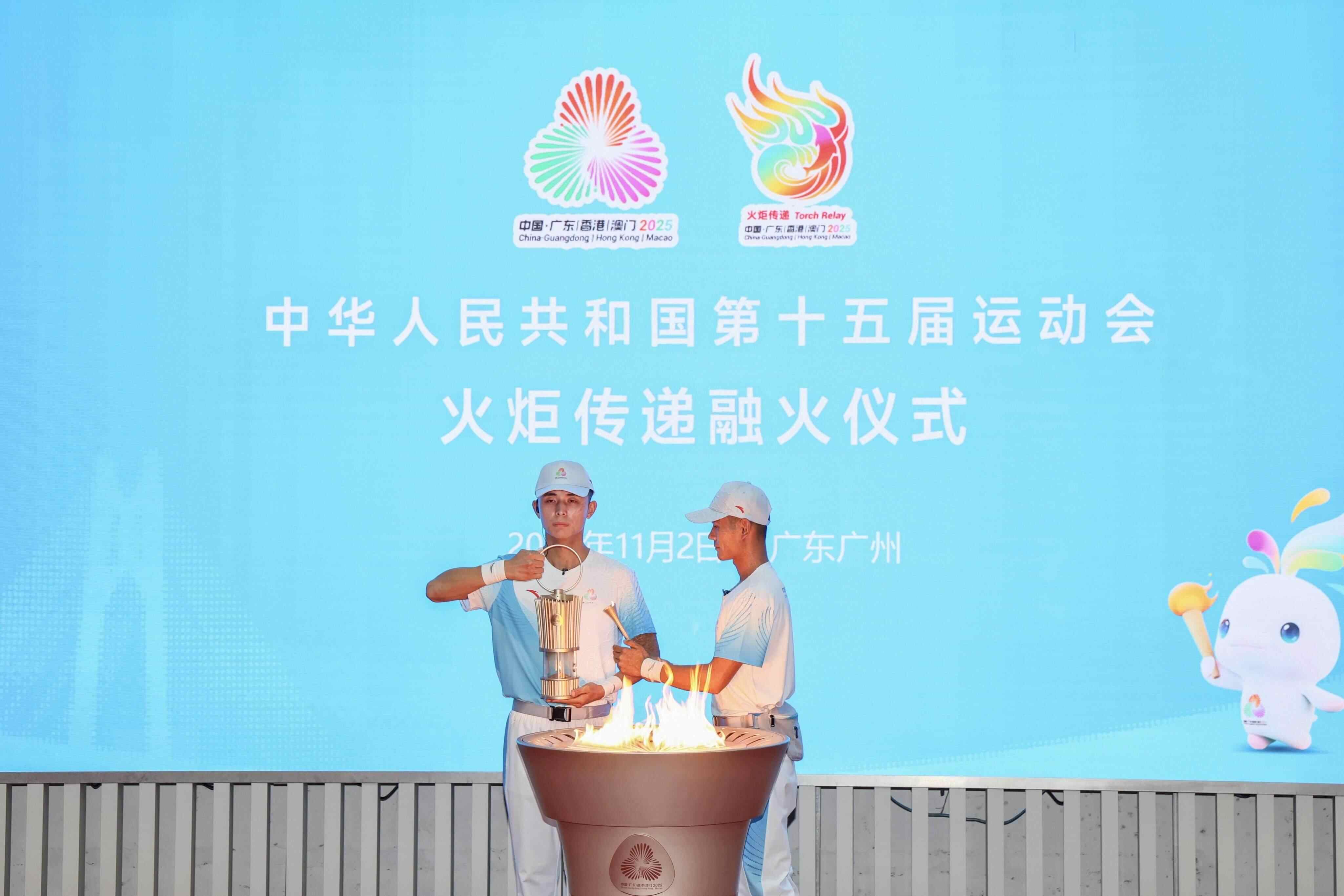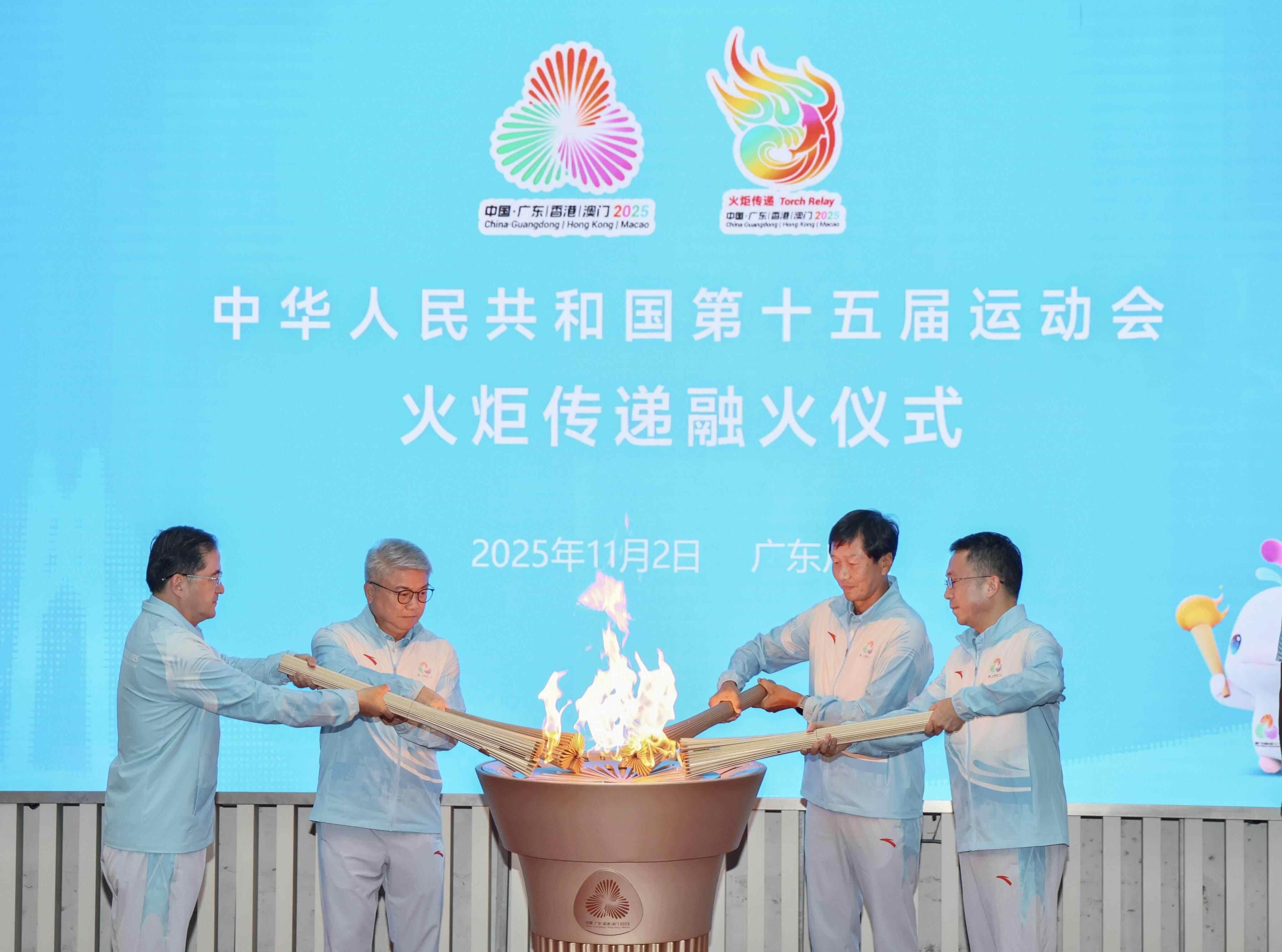 11月2日下午,中华人民共和国第十五届运动会(以下简称“十五运会”)火炬传递融火仪式在广东奥林匹克体育中心成功举行。