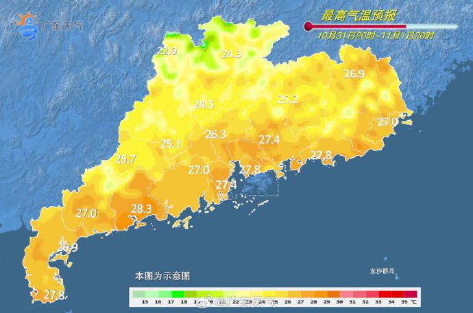 ◆11月1日,珠江三角洲大部、雷州半岛南部、粤东、清远和韶关市县阴天间多云,有分散性零星小雨,其余市县多云到阴天,局部有小雨。