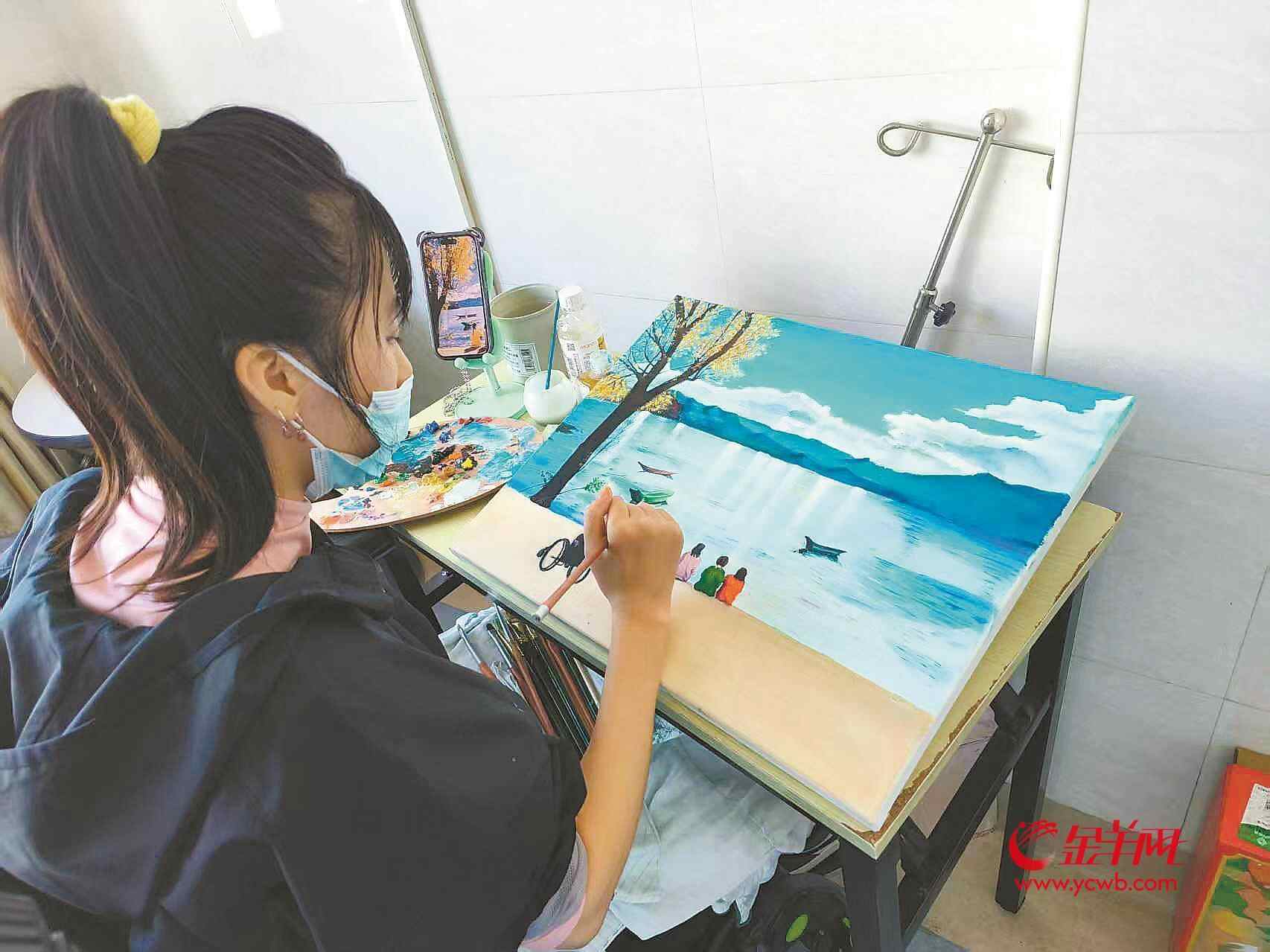 云南一直是红梅渴望的旅游之地,她在网络上看到了一张照片,想把此景画下来的心愿油然而生。“我很向往自由,也希望有一天能和小姐妹去云南。后来,我用了两个上午和两个晚上将作品创作出来了。”这幅画中,有湖泊、蓝天、树木、船舶,还有坐在湖边的三五好友和一辆轮椅。如今,这幅画被挂在医院病区的墙上,每天都能迎来观众。而后来,红梅也实现了她的愿望,完成了历时半个月的云南之旅。