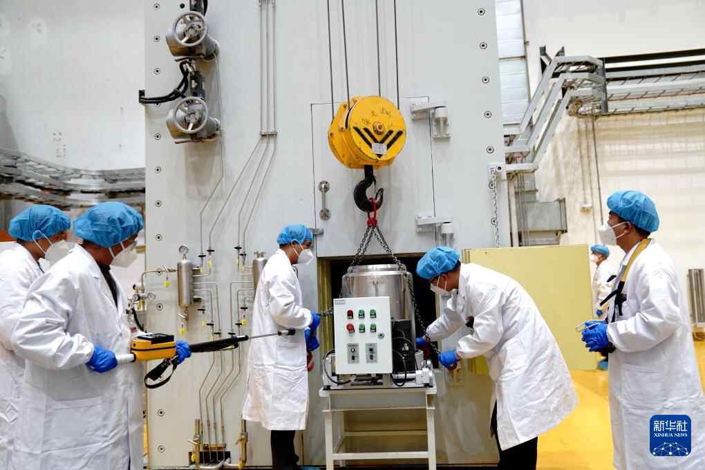 10月24日,在中国科学院上海应用物理研究所武威园区,科研人员在实验堆加料-取样接口区,从堆内取出燃料盐样品。