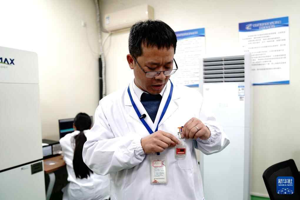 10月24日,在中国科学院上海应用物理研究所武威园区,一位工作人员在佩戴“热释光个人剂量计”,该仪器可随时测量辐射的个人计量当量以确保安全。