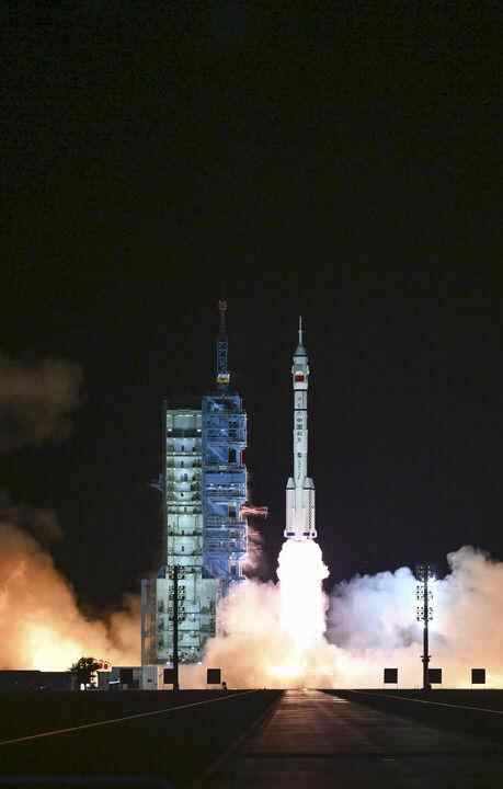 10月31日23时44分,搭载神舟二十一号载人飞船的长征二号F遥二十一运载火箭在酒泉卫星发射中心点火发射,约10分钟后,飞船与火箭成功分离,进入预定轨道,航天员乘组状态良好,发射取得圆满成功。新华社发(汪江波 摄)