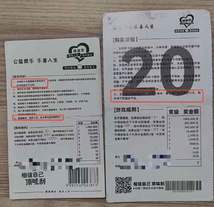 值得注意的是,购买彩票的唯一合法渠道是持有正规体彩代销证的线下实体店。因此,购彩者切勿从电商平台、直播平台、非正规摊点等渠道购买“彩票”或“刮刮卡”,擦亮双眼,合法购彩才能避免类似事件重演。
