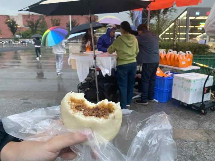美院附中读书的两个女孩骑电瓶车赶来,冒着小雨排队买了三个牛肉包,“我老家在徐州,可以说是北方,也可以说是南方,毕竟徐州是秦岭淮河分界线一带,我吃过不少南方包子,还是喜欢老家的北方大包。”