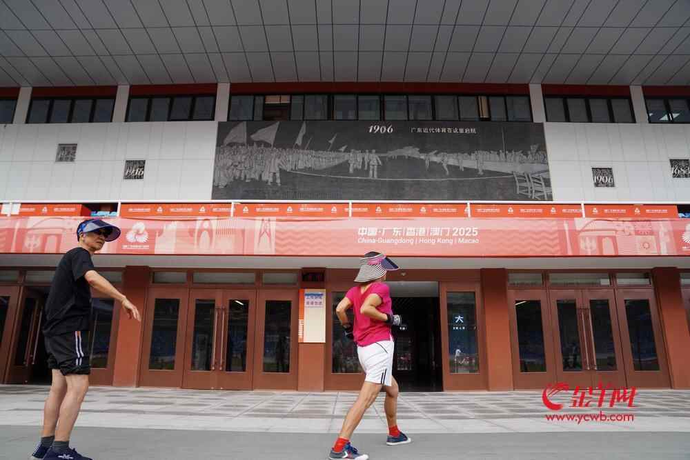 从较场西路一路北上,沿着应元路拾级而上,“越秀山体育场”牌坊映入眼帘。迈入其间,绿色草坪、蓝色跑道与黄色看台交织出鲜明色彩。这座承载着广州人“上山睇波”集体记忆的体育场,如今又因即将到来的全运盛会而焕发新的活力。