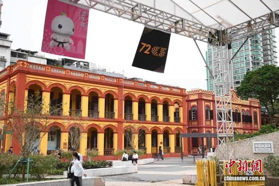 11月6日,随着第十五届全国运动会(简称“十五运会”)开幕进入最后3天倒计时,在各种赛事相关装饰的衬托下,澳门赛区迎接十五运会开幕的氛围浓厚。图为塔石广场上十五运会和第72届格兰披治大赛车宣传彩旗飘扬。