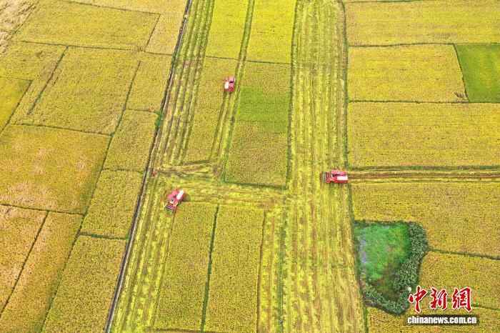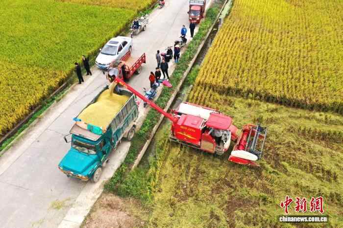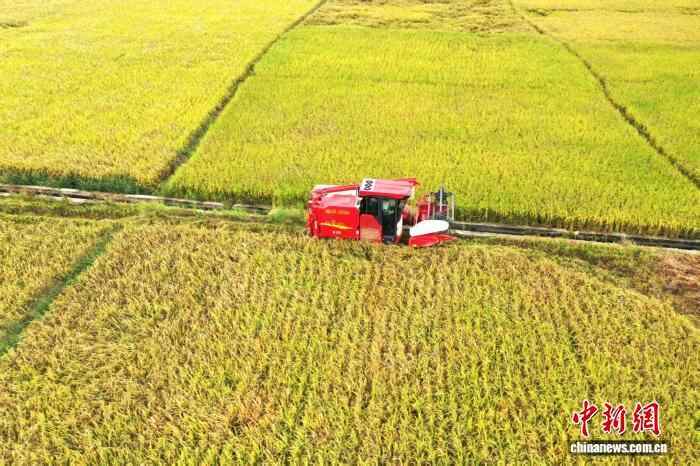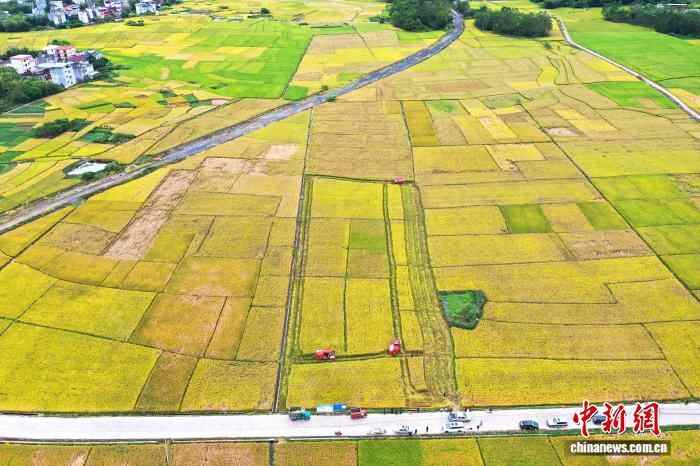 广西平南晚稻开镰收割 机械化助力丰产增收