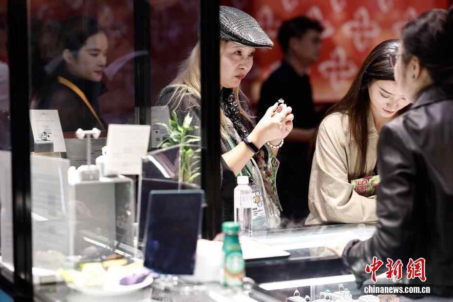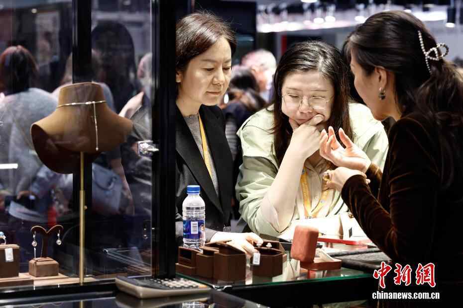 11月6日,人们在消费品展区观看珠宝首饰。11月5日,第八届中国国际进口博览会在上海开幕。据悉,本届进博会上,消费品展区面积高达8.4万平方米,吸引了来自70多个国家和地区的700余家企业踊跃参展,展品品类丰富多元,涵盖美好家居、奢华品牌、美妆护肤、时尚潮流、户外运动等多个领域。