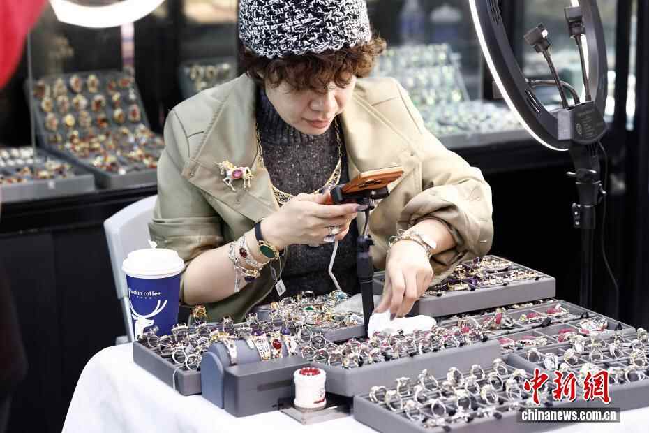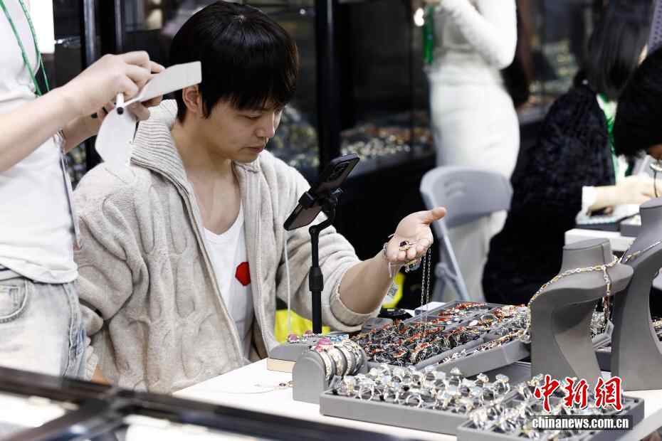 11月6日,在消费品展区,工作人员直播展示首饰。11月5日,第八届中国国际进口博览会在上海开幕。据悉,本届进博会上,消费品展区面积高达8.4万平方米,吸引了来自70多个国家和地区的700余家企业踊跃参展,展品品类丰富多元,涵盖美好家居、奢华品牌、美妆护肤、时尚潮流、户外运动等多个领域。