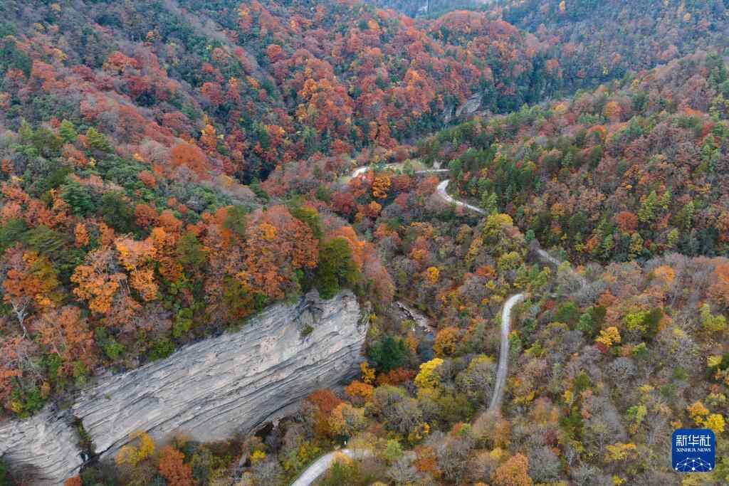 汉中市南郑区境内的黎坪国家森林公园秋色(11月5日摄,无人机照片)。