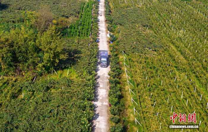 图为村民转运采摘的猕猴桃。(无人机照片)史开心 摄