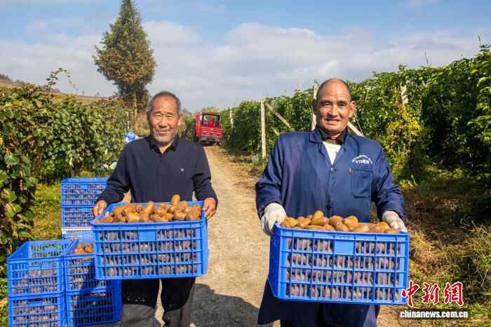 图为村民在搬运采摘的猕猴桃。史开心 摄