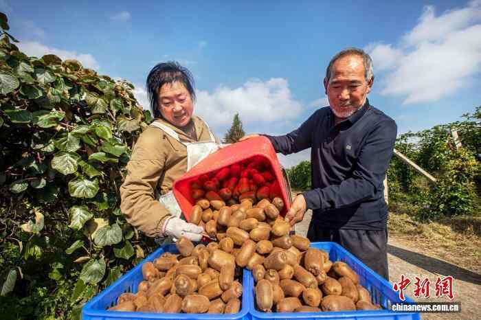 图为村民把采摘的猕猴桃装筐。史开心 摄