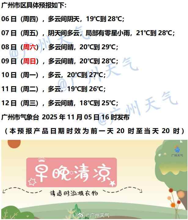 广州天气方面,今明两天云量增多,Sunny哥退居二线。想要晾晒的小伙伴可以在周末再进行。