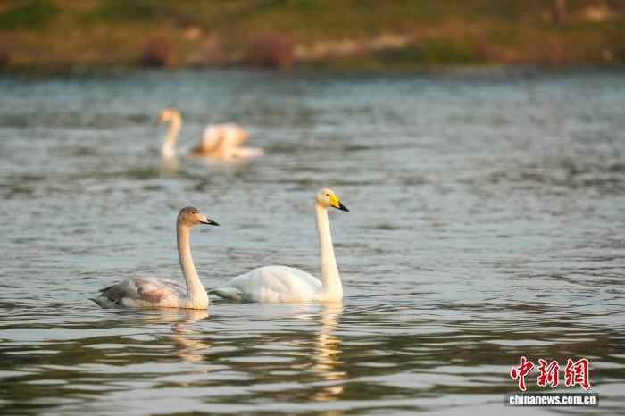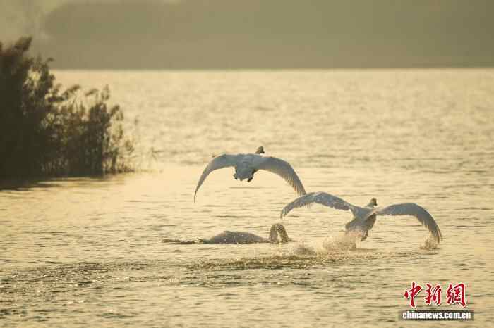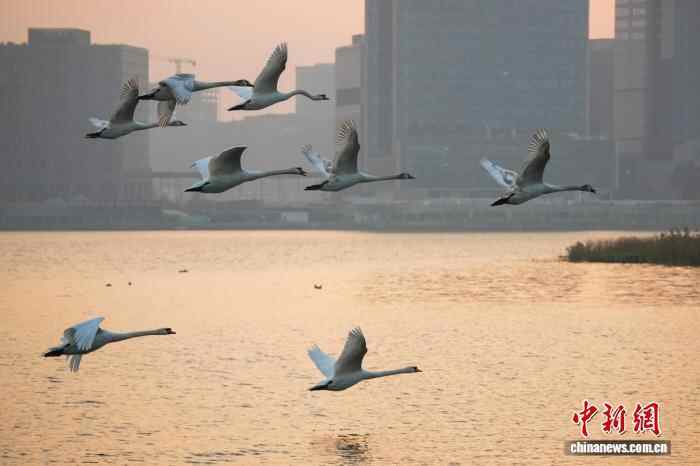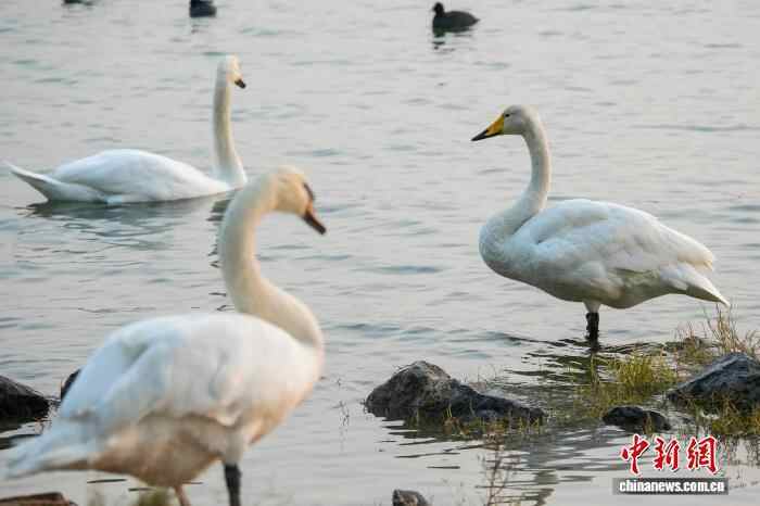 图为迁徙途中飞抵北龙湖湿地公园“歇脚”的大天鹅。中新社记者 范晓恒 摄