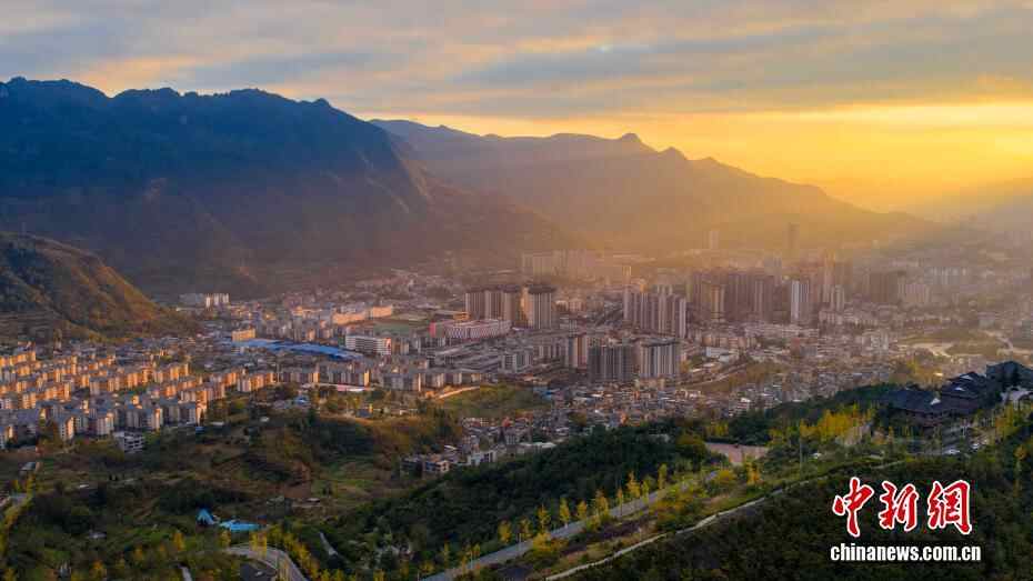 图为11月4日,金色阳光洒在贵州省毕节市赫章县城上空。