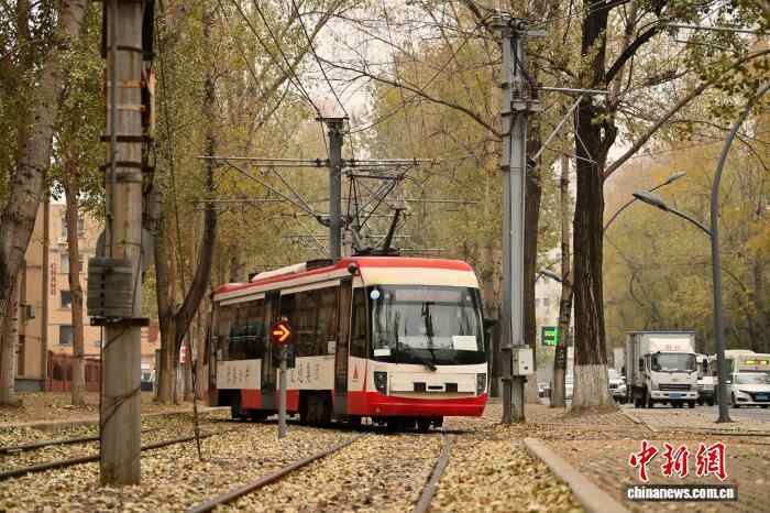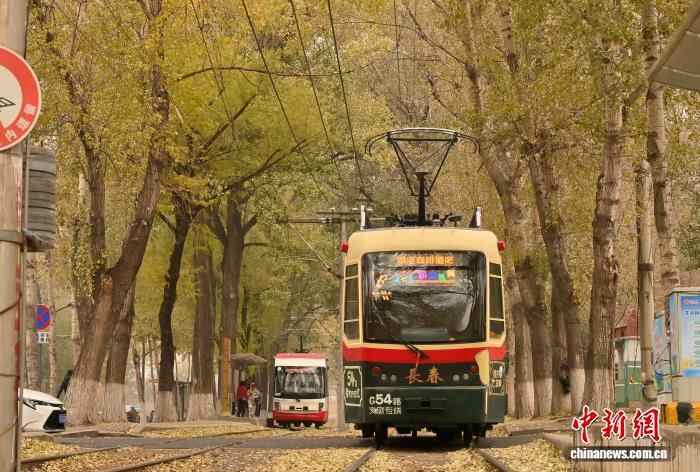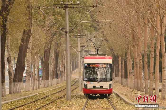 11月5日,吉林长春秋意正浓,一处轨道两旁的树叶泛黄,有轨电车宛如在画中穿行。 中新社记者 张瑶 摄