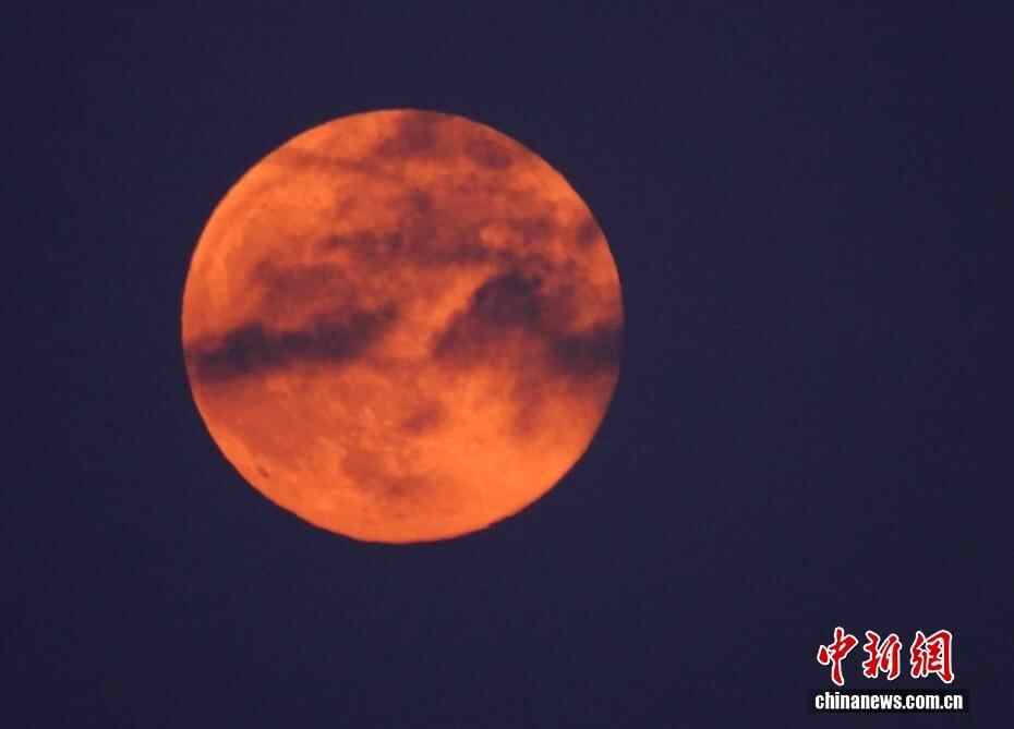 11月5日晚,本年度最大的“超级月亮”现身夜空。图为一轮“超级月亮”现身江苏省扬州市上空。