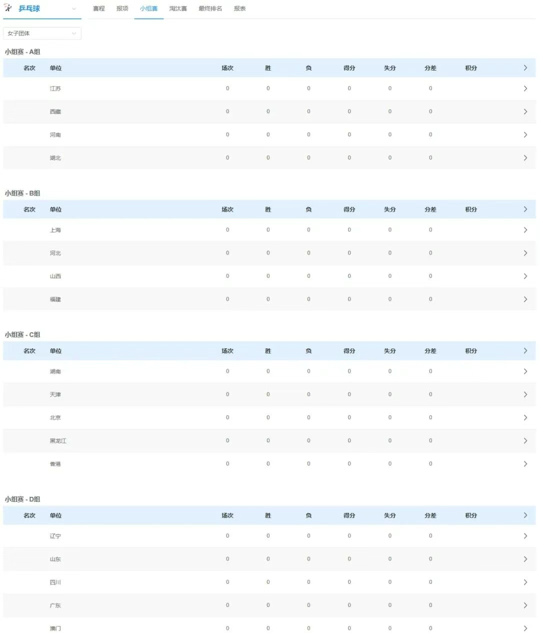 成年组女团小组赛,孙颖莎所在的河北队、王曼昱所在的黑龙江队、陈梦所在的山东队,分别落位B组、C组和D组。