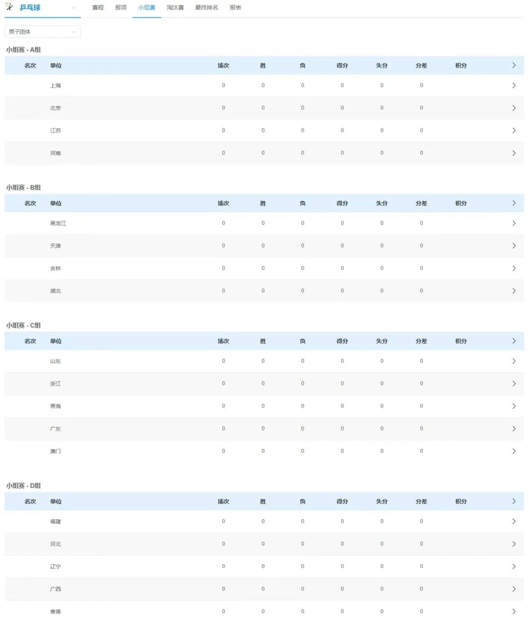 根据签表,在成年组男团项目小组赛,北京队与上海队同时落位A组,这意味着北京队的王楚钦、马龙与上海队的樊振东、许昕在小组赛就将上演“强强对话”。此外,东道主澳门队落位C组,与林高远、周启豪所在的广东队同组;黄镇廷率领的香港队落位D组,与梁靖崑所在的河北队同组。
