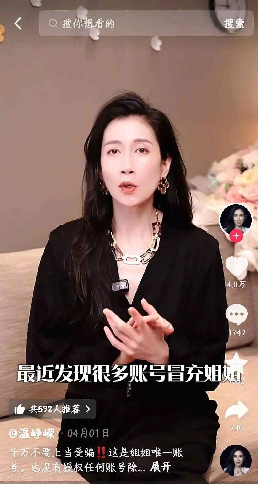 据报道,当前有多个直播间同时出现 “温峥嵘” 的影像,但这些均非她本人出镜。此类内容要么是 AI 合成的虚假直播,要么是盗播、录播的过往片段。