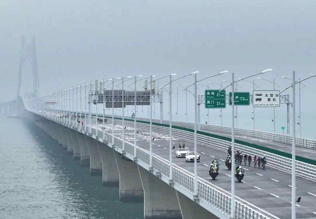 港珠澳大桥段的横风是比赛重要分水岭,可观察选手如何通过梯队骑行减少风阻;长达231.8公里的赛程,对选手的体力分配和队伍战术也构成极大考验。