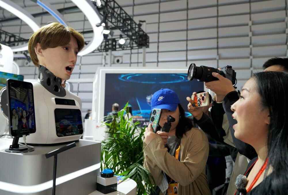 ↑ 11月6日,观众在2025年世界互联网大会“互联网之光”博览会现场参观拍照。新华社记者 刘琼 摄
