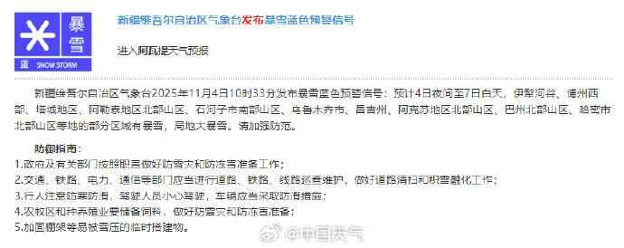 这波冷空气有多强?新疆已发布寒潮、暴雪、大风、道路结冰四个预警。