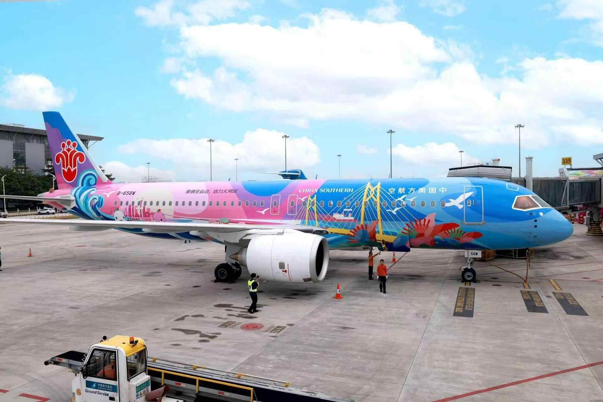 ◆“大美湾区”号首航!国内首架C919十五运会彩绘飞机来啦。详情-->