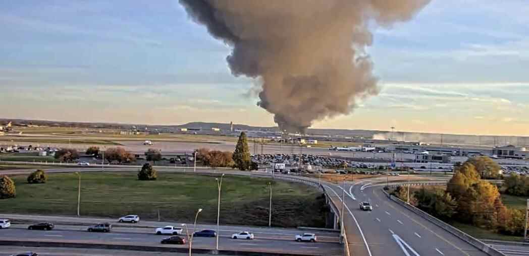 美国肯塔基州一机场发生飞机坠毁事故 现场浓烟滚滚
