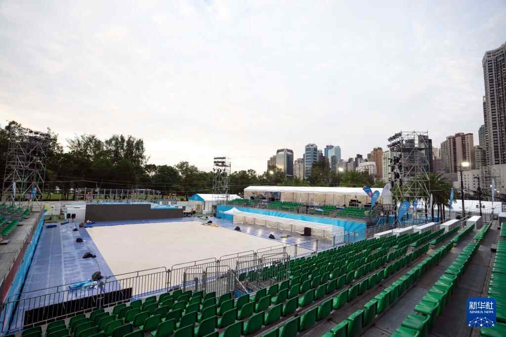 香港维多利亚公园沙滩排球场地(10月25日摄)。全运会沙滩排球比赛在这里举行。