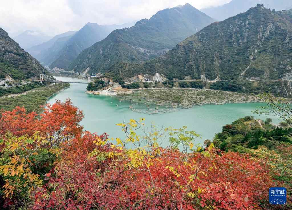 11月2日拍摄的甘肃省陇南市文县玉垒关白龙江秋色。
