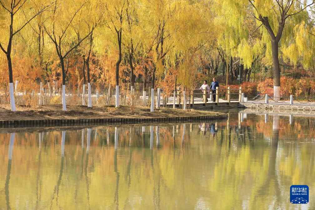 11月2日,市民在甘肃省定西市安定区定西湖公园赏秋游玩。