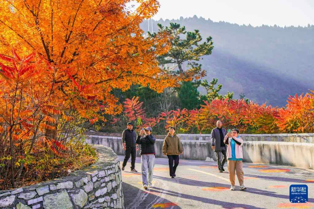 11月4日,游客在河北省遵化市南山常乐谷景区赏景拍照。